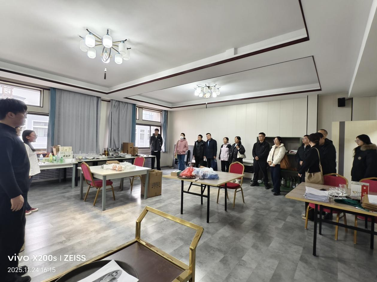 理论学习环节结束后,市技工教育发展中心党总支副书记耿文勇一行实地参观了酒店管理实训室和网络直播研究中心。参观过程中,耿文勇详细了解了实训设施的运行情况、课程设置以及学生实践成果,并与正在备战职业技能大赛的学生和指导教师进行了亲切交流。他对经济管理系先进的实训条件、科学的备赛组织以及学生展现出的精湛技能和良好精神风貌给予了高度评价,并表示:“同学们扎实的技能功底和积极的备赛状态,充分体现了职业技术学院在高素质技能人才培养上的显著成效,令人印象深刻,期待你们在未来的大赛中捷报频传,为校争光。”