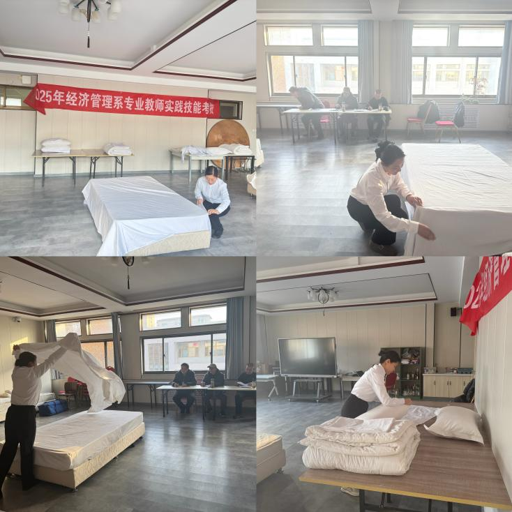 为确保考核的公平、公正、公开以及专业性,教研室提前制定了详细且具有针对性的考核方案。考核内容包括床单、被套、羽绒被、枕头四个环节,全面考察教师在客房服务实际操作中的规范程度、熟练度和应变能力。同时,教研室还精心准备了考核所需的各类物品和场地,从客房的布置到工具的摆放,都进行了设置,为考核的顺利进行提供了坚实保障。