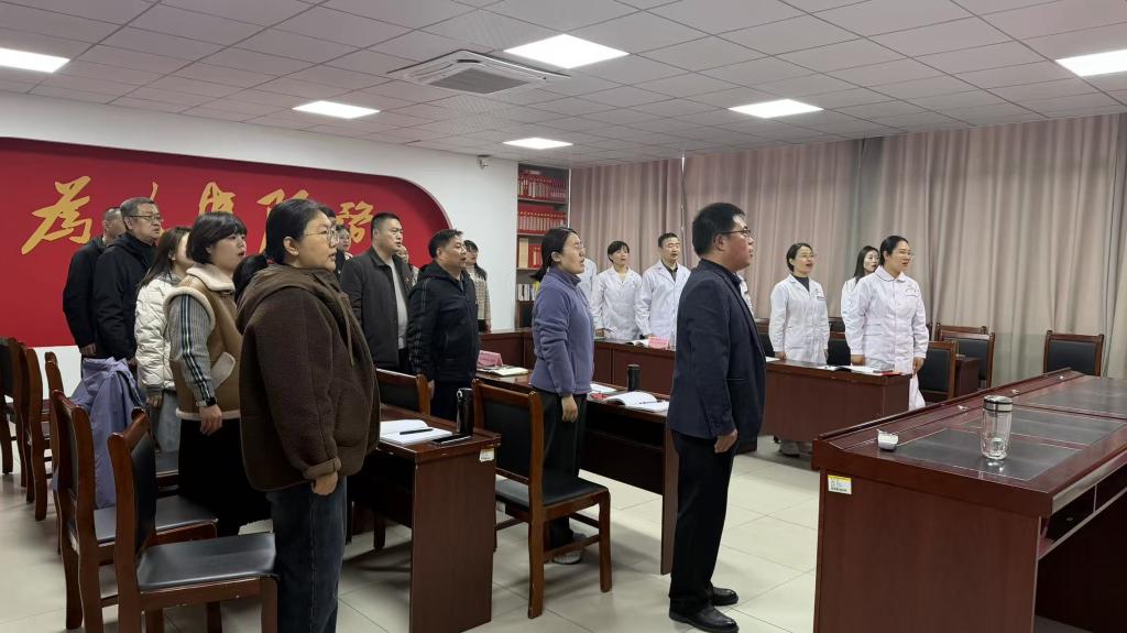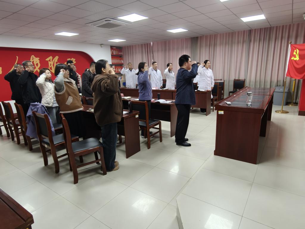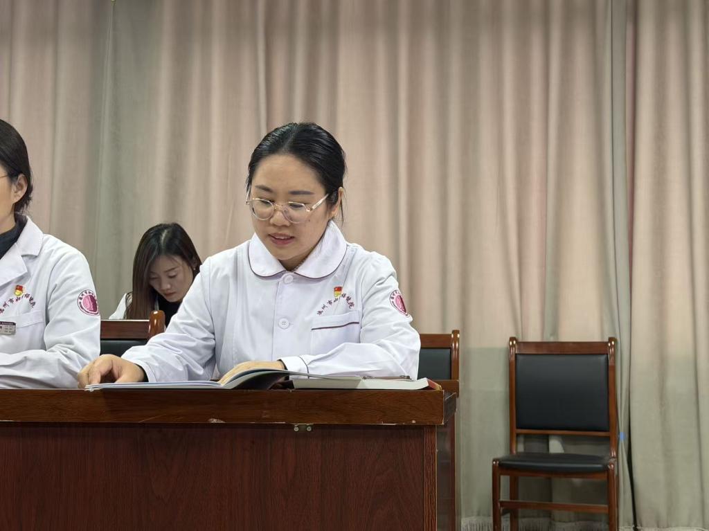 德州市妇幼保健院第三党支部书记徐敏玲、党员代表刘丹青领学党内法规《中国共产党章程》第一、二章内容。