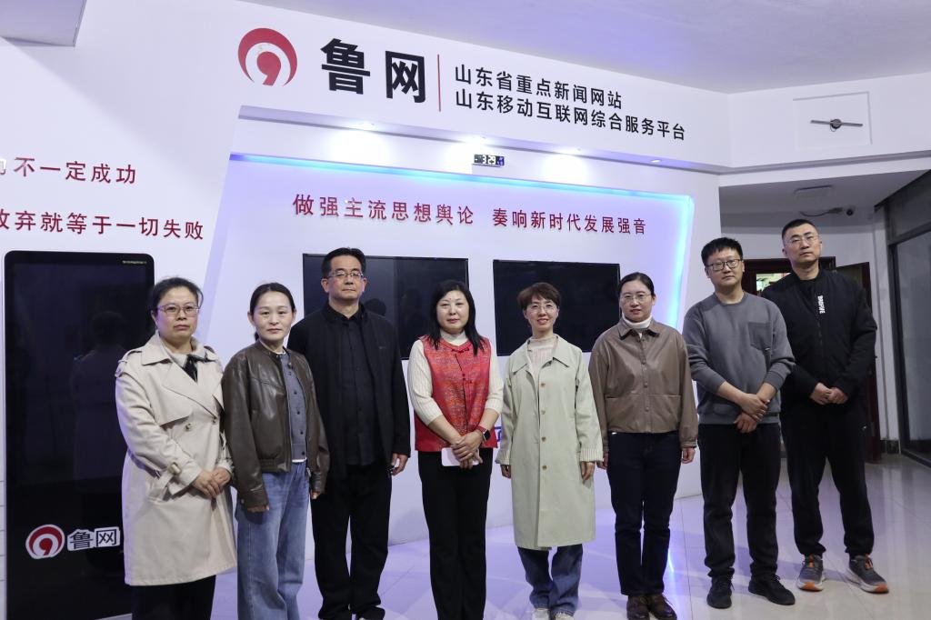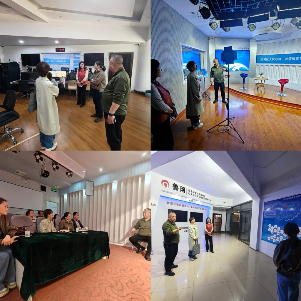 走访期间,教师团队在企业负责人陪同下,实地参观了鲁网德州频道多功能演播厅、新媒体采编中心、直播运营工作室等核心场景,详细了解企业在新闻新媒体运营、短视频策划制作、直播助农、本地品牌电商推广等业务的运营模式与岗位需求,直观感受媒体融合背景下“新闻 + 电商”的复合型岗位能力要求。